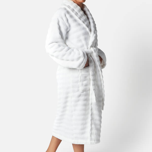 Featuring a chic silhouette with a shawl collar and belt tie for ultimate style, comfort, and convenience. Delicately accented with two pockets featuring small ESPA branding as a finishing touch, this plush robe brings you elegance and is perfect for keeping any beauty treats on hand.