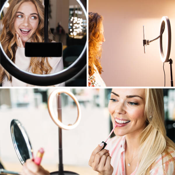 Riippumatta siitä, valmistaudutko valokuvaukseen, yritätkö saada täydellisen selfien tai meikkaat, RIO:n LED-rengasvalo valaisee kasvot himmennettävällä, tasaisella hehkulla, joka on ihanteellinen meikkaamiseen ja vloggaamiseen. Valo voidaan asettaa jäljittelemään lämmintä (sisätiloissa), luonnollista (ulkona) tai orgaanista valoa, jolloin voit löytää imartelevimman valon ja tutkia, miltä meikki näyttää eri valonlähteissä.